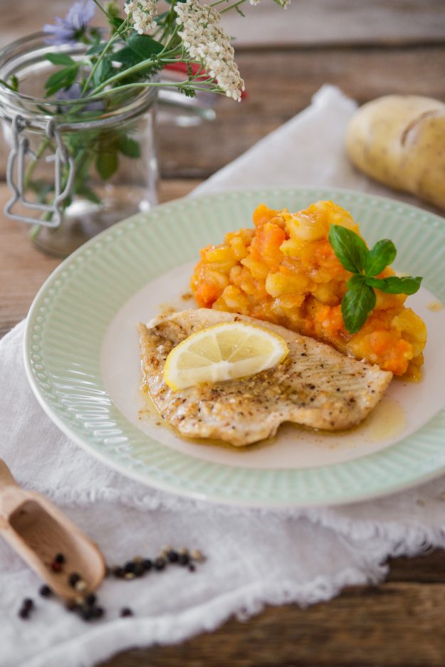 IDDSI Koststufe 6: ( weich und mundgerecht – soft) Weiterlesen [Schollenfilet mit Möhren-Kartoffel-Stampf]
